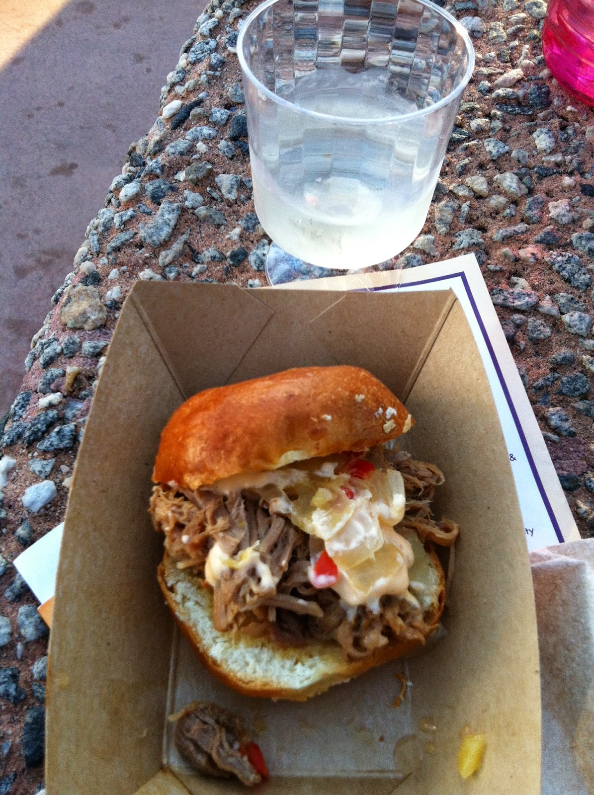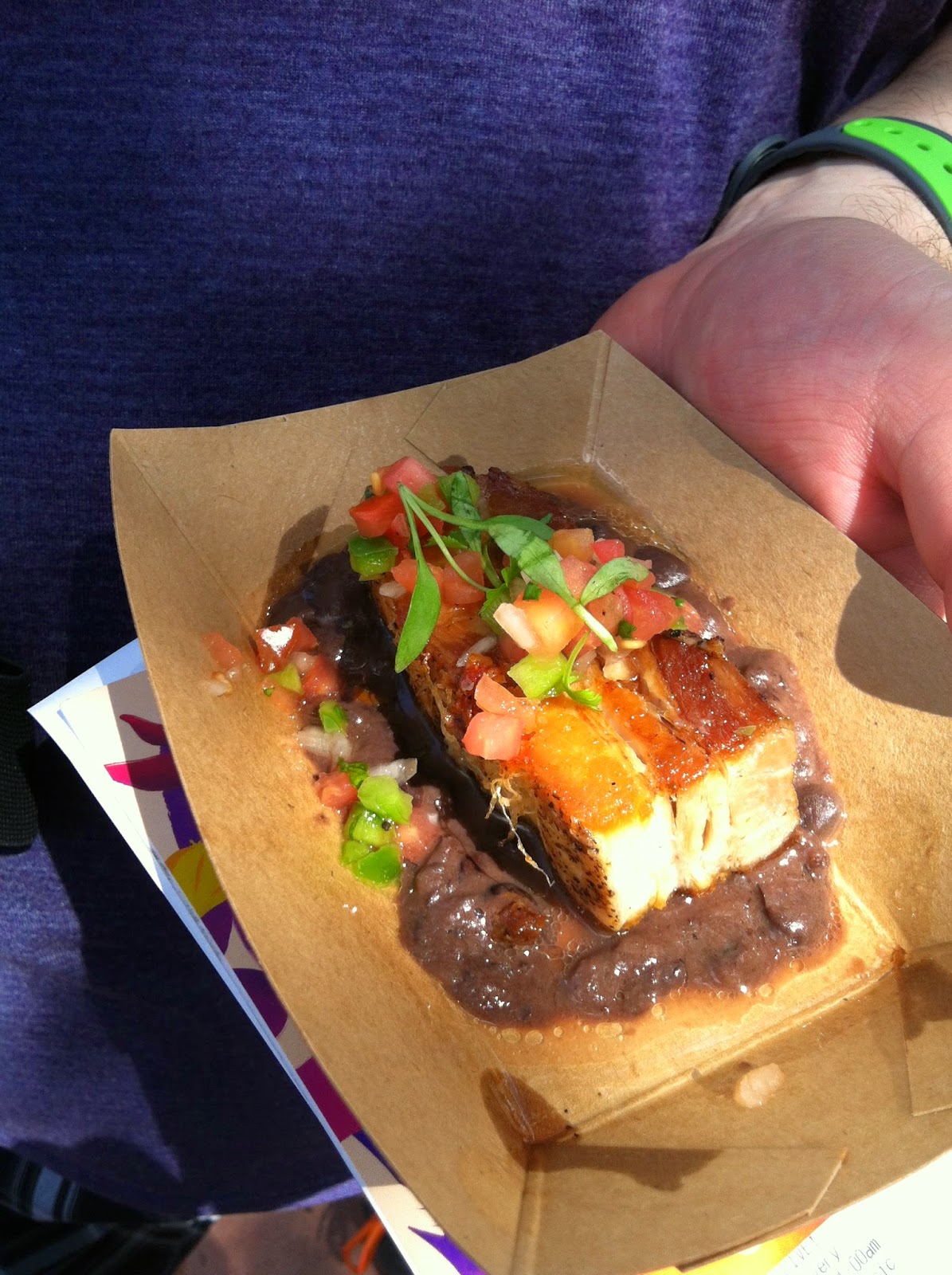 *This was the first booth I visited on my single trip around the world.-Kalua Pork Slider with Sweet and Sour Dole Pineapple Chutney and Spicy Mayonnaise * Long name for a tiny sandwich! Having said that though, it was several bites of pure yumminess. The little bites of pineapple were nice surprising complement to the pork. Ties for "best main dish" for me!