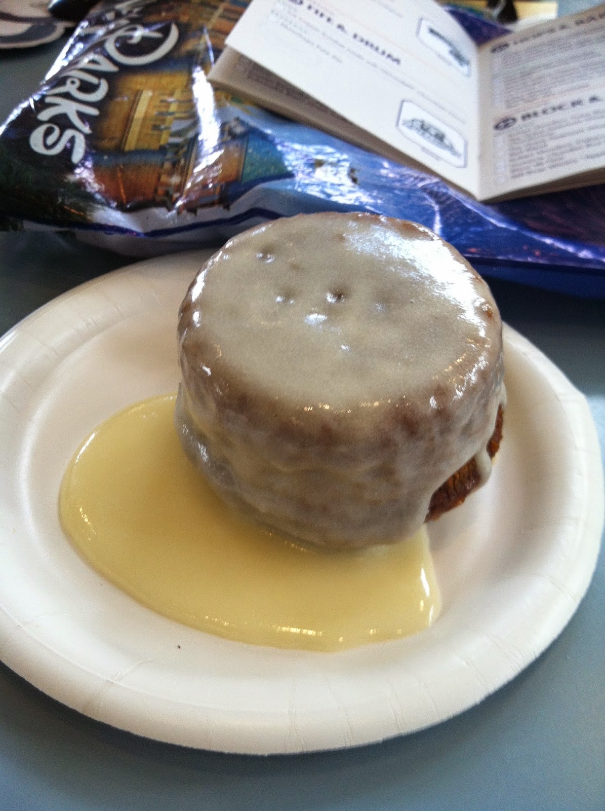 -Berliner-Yeast Doughnut filled with Apricot Jam * If you like apricot jam and you like doughnuts, you will like this. I had to fight off children, particularly the one who eats apricot jam on a near daily basis & is now taller than me. *sigh* Maybe you should buy more than one if this is your dilemma as well?
